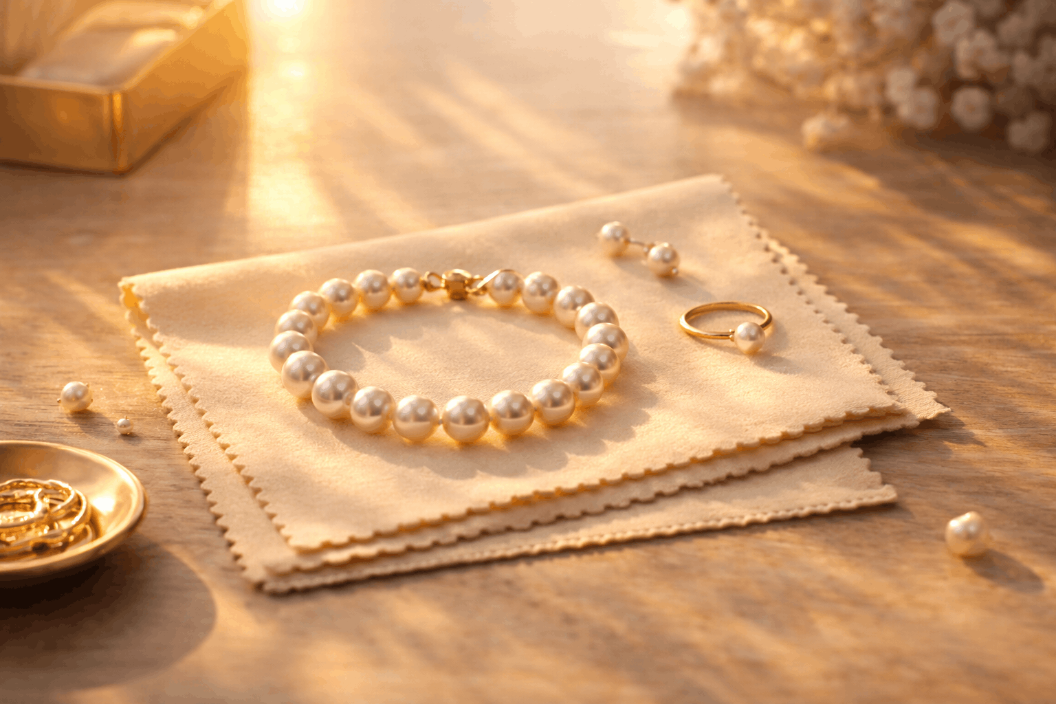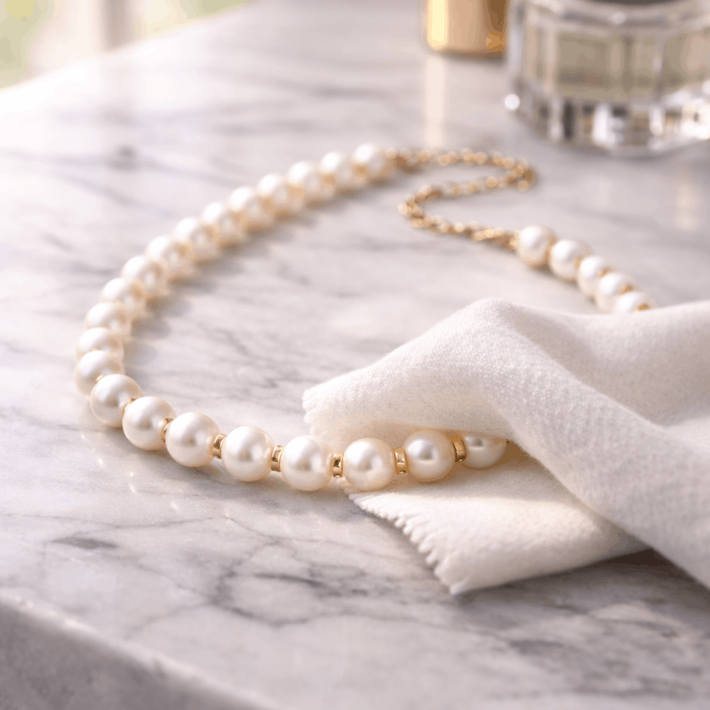 Quand vous rentrez chez vous, enlevez les perles en premier. Avant de vous laver le visage ou les mains. Avant d’appliquer votre crème de nuit. Enlevez-les et passez délicatement un chiffon doux. Cela retire les huiles de la peau avant qu’elles ne s’accumulent et ternissent l’éclat. Ça prend une trentaine de secondes. Mais cette petite habitude évite la majorité des dommages causés par le port quotidien. Vous enlevez la saleté avant qu’elle ne devienne un problème nécessitant un nettoyage en profondeur.
