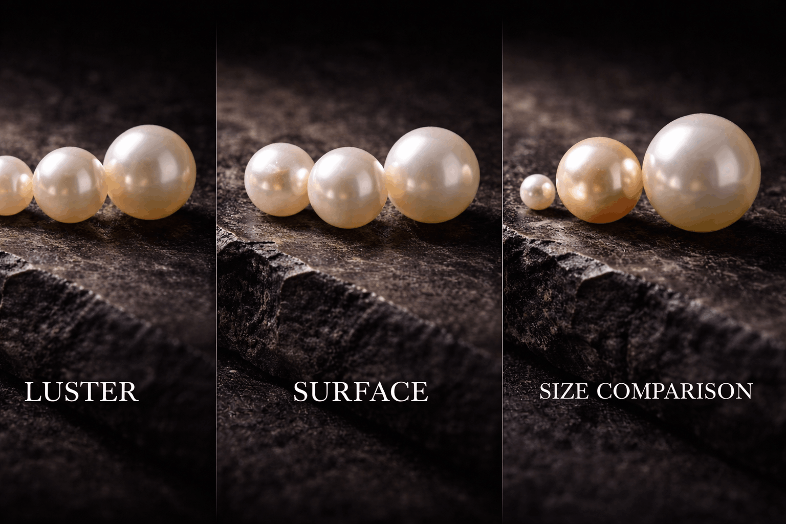 Les défauts de surface influencent directement combien valent les perles. Les surfaces propres avec très peu de taches, bosses ou irrégularités coûtent significativement plus cher que les perles très abîmées. Les perles parfaitement propres sont super rares. La plupart ont au moins de petits défauts si on regarde de près. C’est normal et acceptable pour les perles de gamme moyenne.